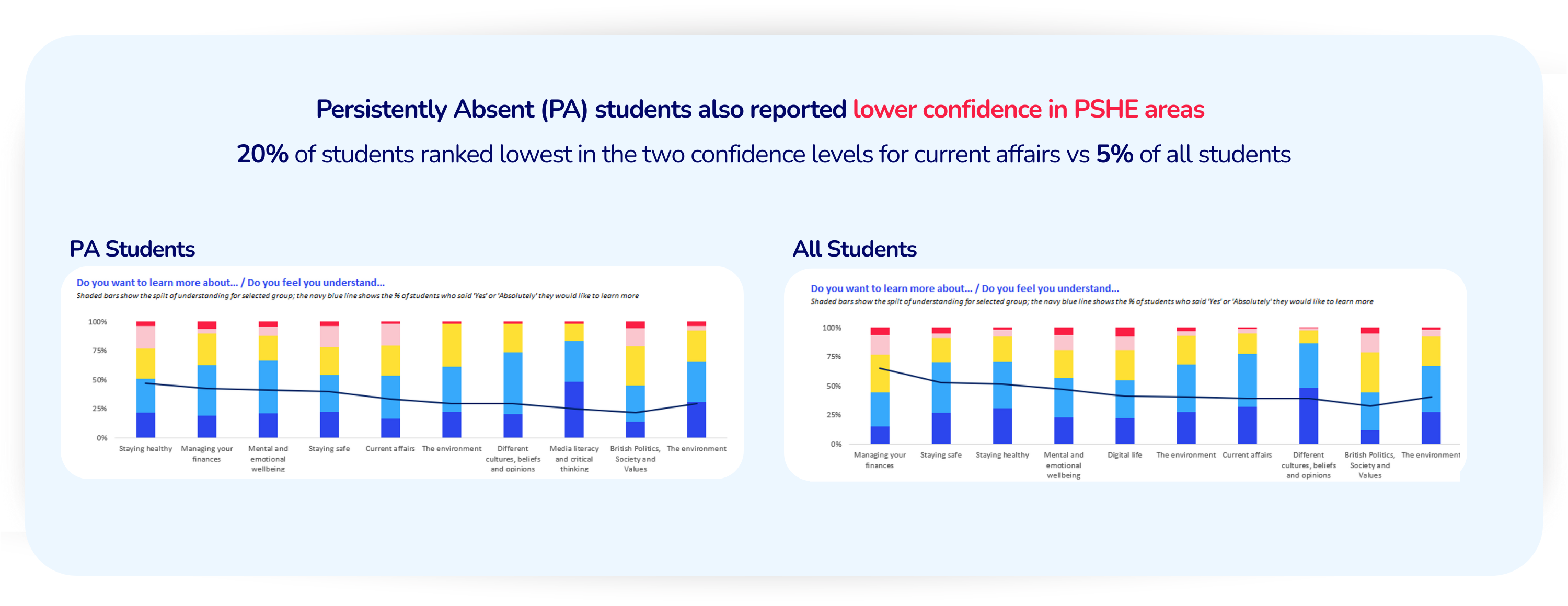 It started with student insights the schools didn’t have before. Student data was collected via our Aspirations platform across 4 categories: Wellbeing, Skills, Careers & PSHE