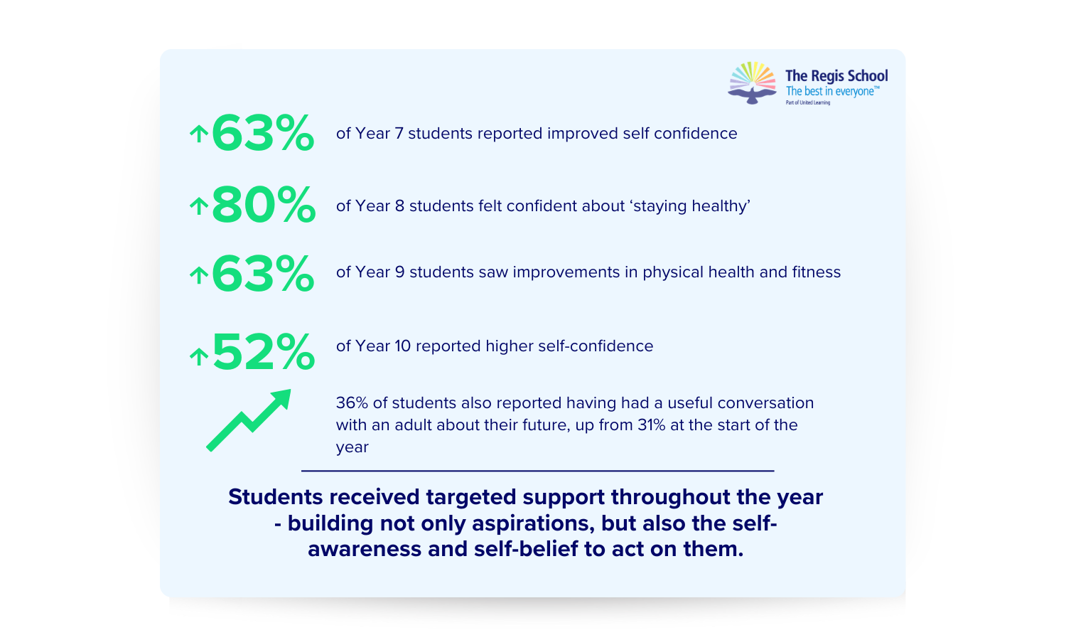 At The Regis School in West Sussex, Aspirations has become part of everyday practice. Tutors and year leaders use student insight to shape wellbeing initiatives and personal development support.